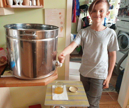kakorna. Honungen är nu flytande och silas flera gånger för att den ska bli ren